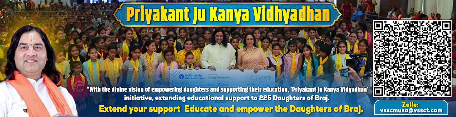 Rooted in a vision of empowerment, this initiative began in 2016 with the inauguration of the Thakur Shri Priyakant Ju Temple. On this significant occasion, Pujya Shri Devkinandan Thakur Ji Maharaj launched a dedicated program to support the education of daughters from underprivileged families in Braj. Under this initiative, every year, financial assistance is provided from the temple fund to help 125 deserving girls to pursue their education.